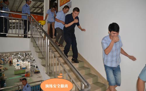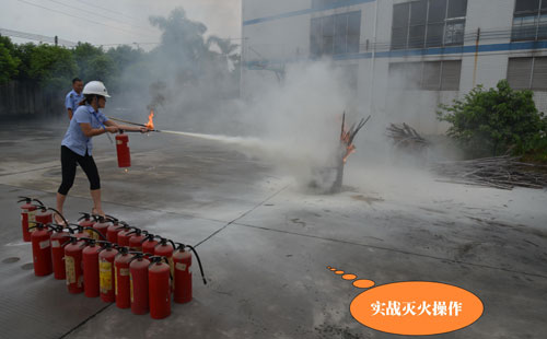 第二個環節:演練緊急疏散,模擬情景是辦公樓內響起了火災警報,樓層內的人員緊急疏散撤離,員工們現學現用,按萬隊長所教的做法撤離現場。第三個環節是演練全廠范圍內員工接到了火災警報后逃生、救助的情形,這也就是救援組、滅火組、醫務組、后勤組、模擬傷員等角色的演繹。第四個環節就是由萬隊長教大家如何正確使用滅火器、如何快速安裝消防水帶等一系列滅火動作,湯總特別強調了正確救火的重要性。期間,進行了實戰滅火操作,不少員工親自動手體驗了用滅火器撲火的過程。